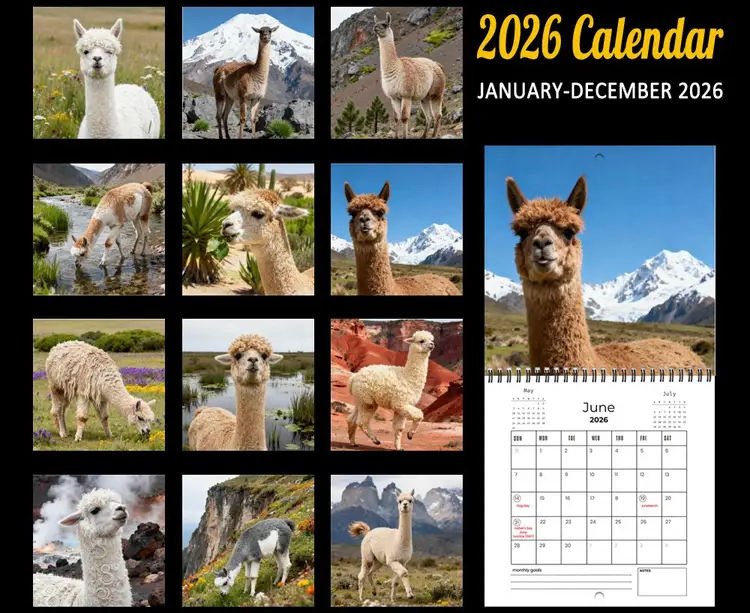 2026 alpacas wall calendar